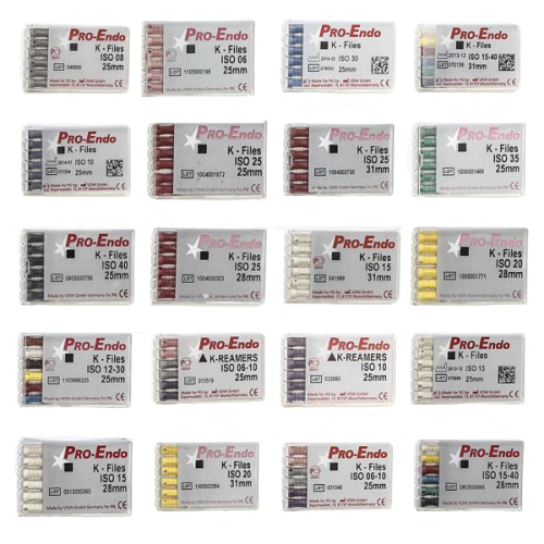 К-файл № 25 К-файл № 25 Pro-Endo применяется в эндодонтии для создания приемлемой формы зубного канала для обеспечения ирригации и последующего пломбирования. Используется для расширения ранее пройденных каналов.