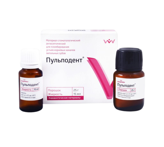 Пульподент - быстротвердеющий для устьев каналов витальных зубов (25г+15мл), ВладМива / Россия